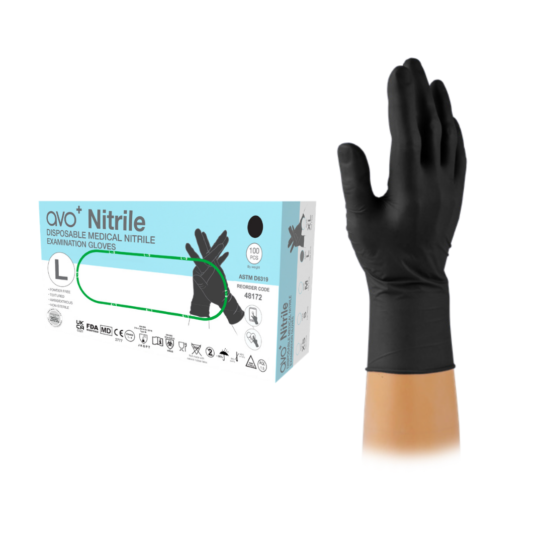 Avo+ svartir nítríl hanskar (6.5g) – fentanýlvottaðir