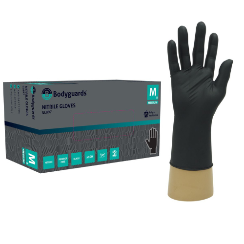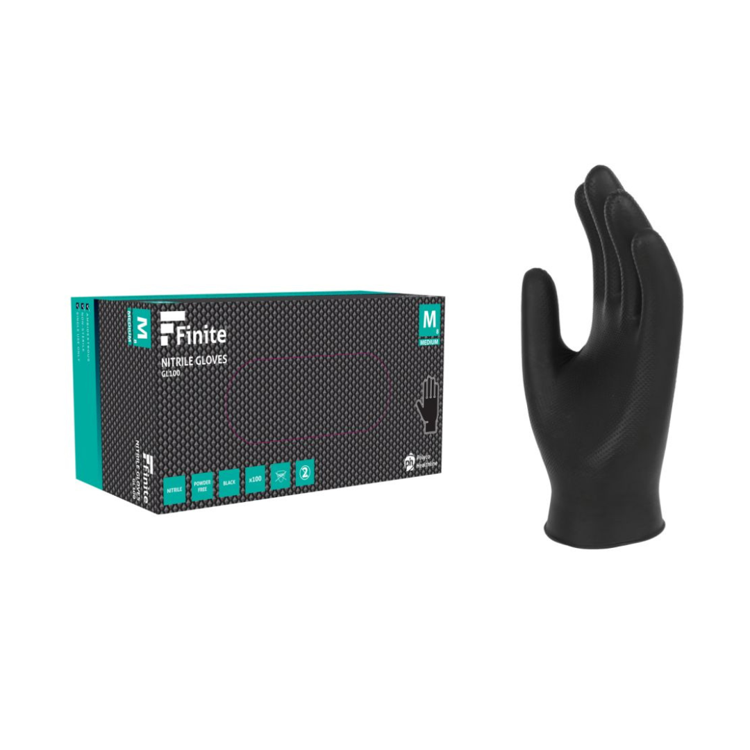 • Gl100 einnota svartir nítril hanskar með demantsgripi (7.1g )