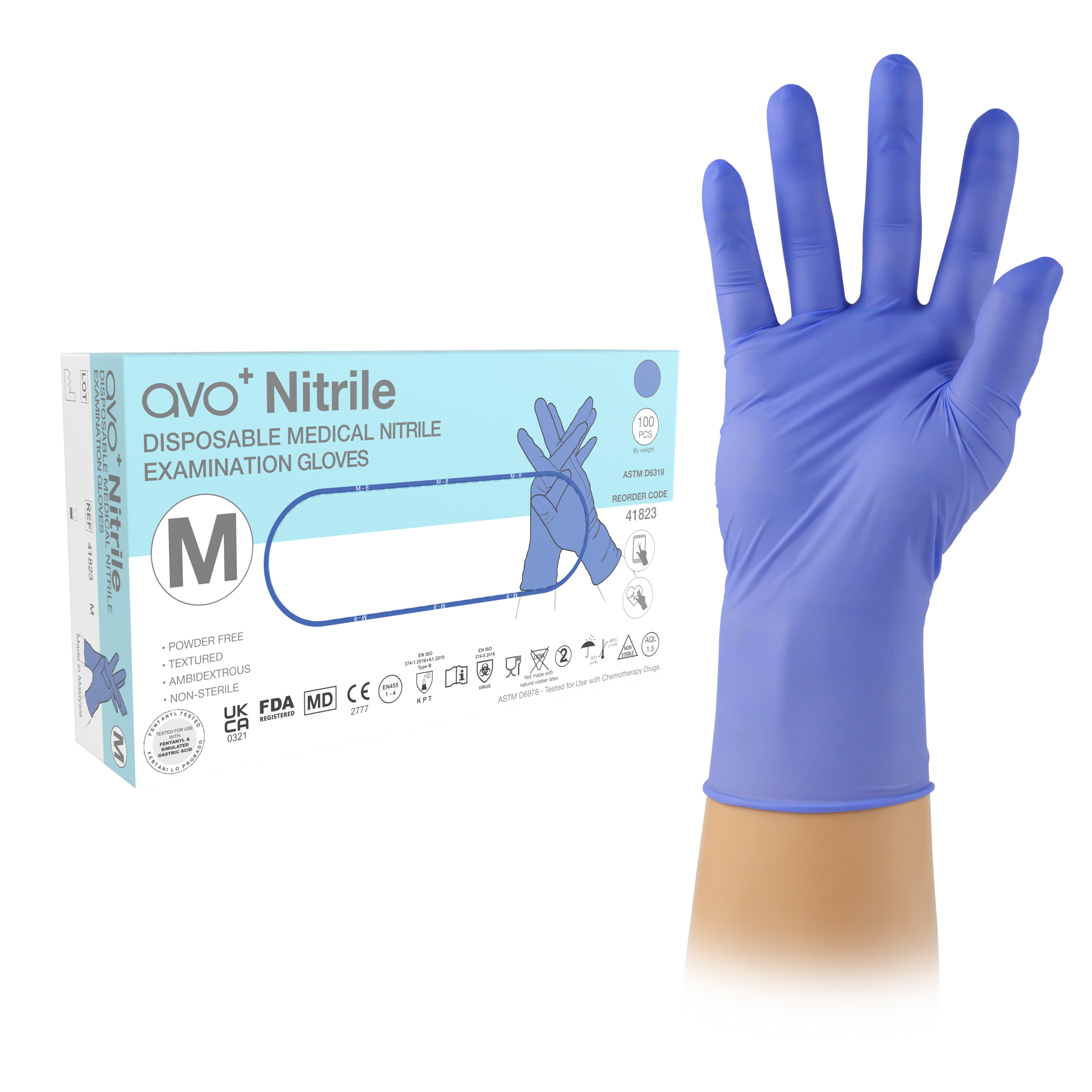 AVO+ Einnota Langur (295mm) Nítril Hanskar - Disposable Medical Nitrile Examination Gloves Minnsta sölueining: 1 kassi (10box af 100...