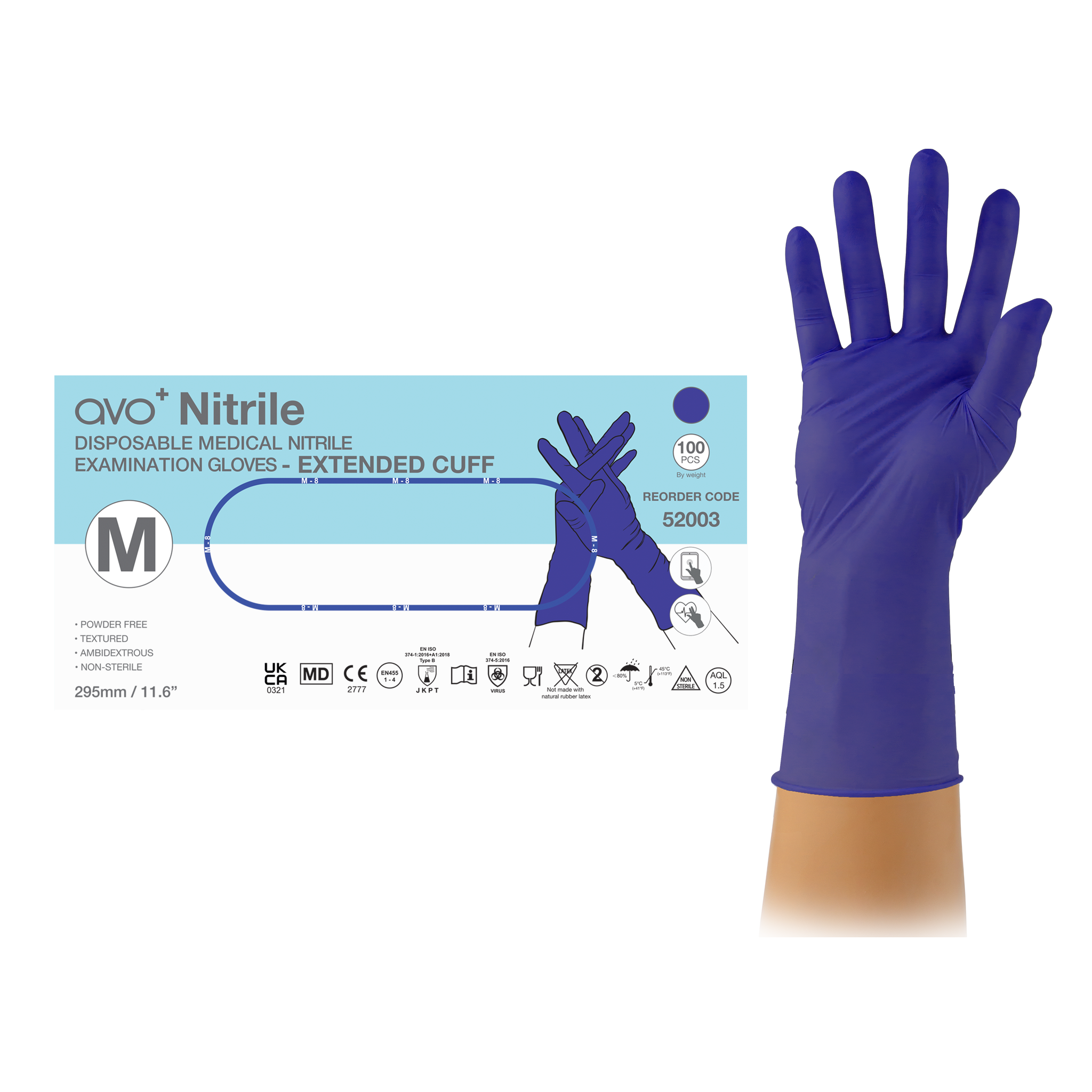 Avo+ einnota langir nítríl hanskar 30cm (8.0gr)