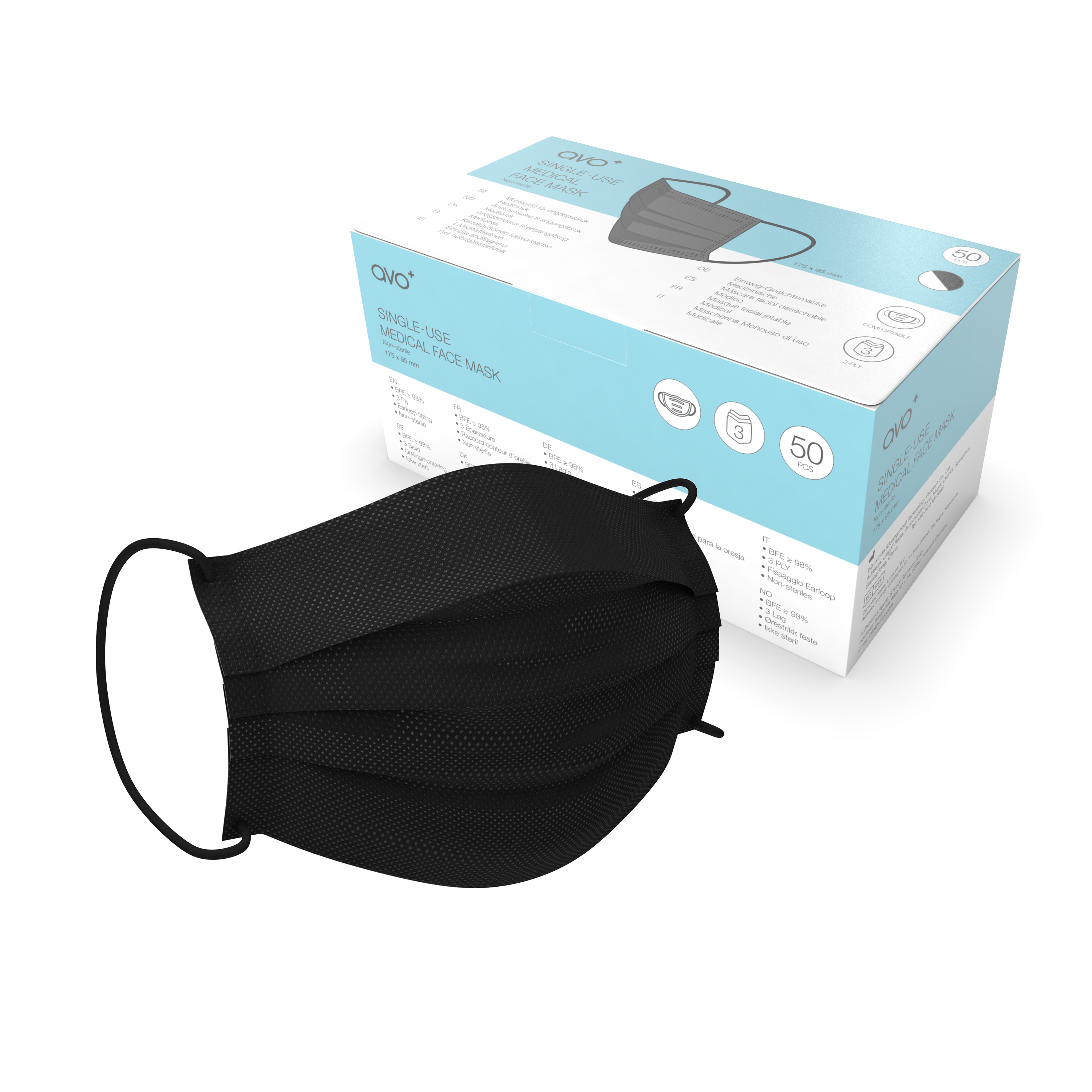 Avo+ type ii-r – svartar læknagrímur (50 stk/box)